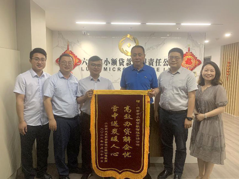高效办贷解企忧,雪中送炭暖人心。2023年7月7日,六安新鸿意资产管理有限公司(以下简称“新鸿意公司”)为感谢市小贷公司及时解决其资金需求,来到市小贷公司赠与锦旗。