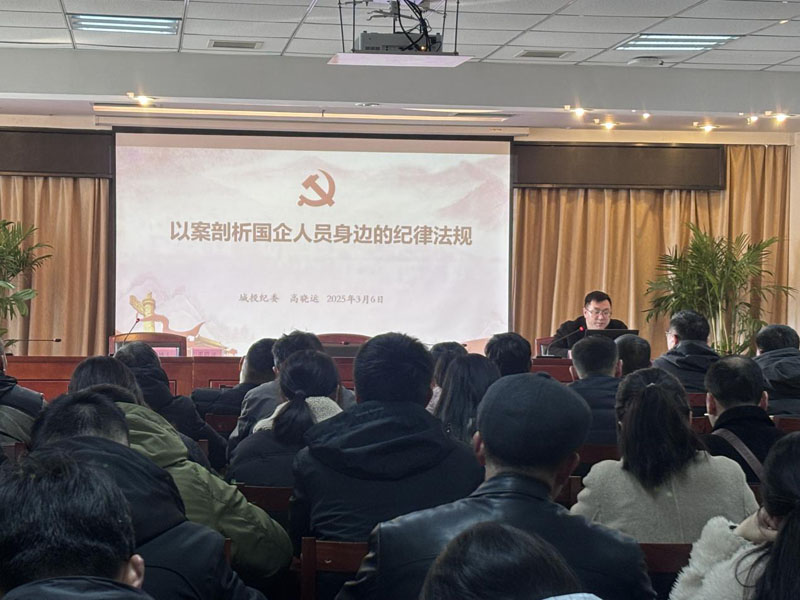 随后,城投公司纪委副书记高晓运以“以案剖析国企人员身边的纪律法规”为主题结合各类案例,围绕“国企人员应遵守的纪律法规、常见的违规违纪行为、争当国企改革发展的时代先锋”等内容进行授课,剖析案例本身,引申出对国企人员职业操守和责任担当的深刻思考,使参会人员对党纪法规有了更深刻的认识和理解。