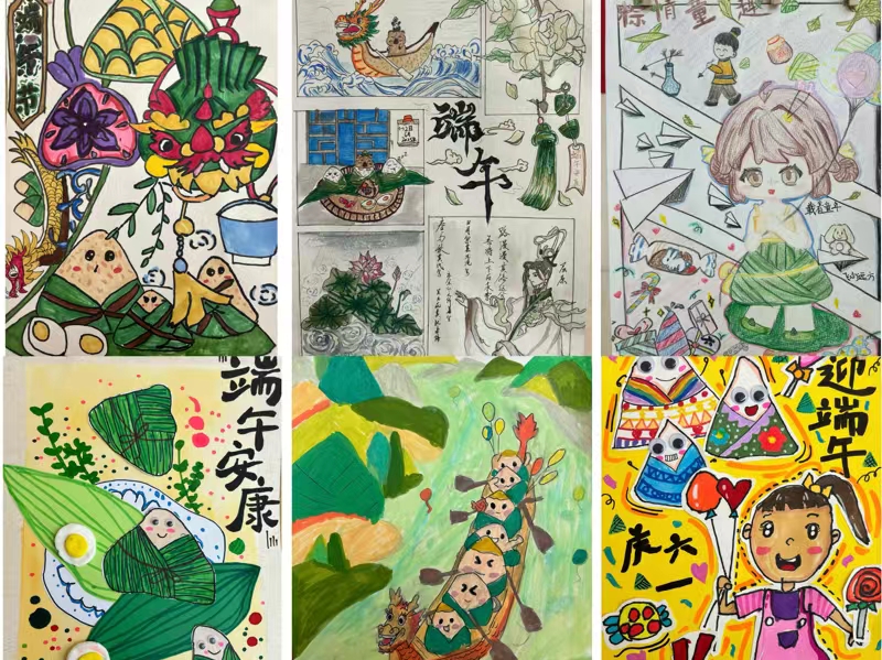 本次活动将传统节日文化与儿童艺术创作相结合,吸引了许多职工子女热情参与。活动现场以端午元素与童趣表达为核心,孩子们用水彩笔、彩铅等绘画材料,将端午的龙舟、粽子、艾草等传统符号与卡通形象、童话场景巧妙融合,用童真画笔描绘出对双节的独特理解:有的把粽子画成戴墨镜的“摇滚明星”,举着鼓槌在龙舟上开演唱会;有的赋予粽子“会飞的魔法”,想象的翅膀不仅带着粽子飞上云端,还在彩虹之间跳起了舞;还有的将承载着快乐童年的纸飞机放飞天际,彩色气球在空中飘摇,怀揣着孩子们的梦想一同飞向高空。