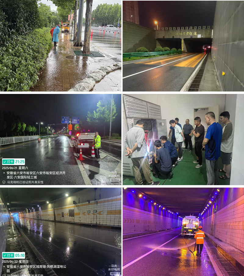 次日凌晨4点,任红光接到城投公司值班人员张辉电话反映下穿隧道有积水。遂立即联系周松,二人顾不上一身疲惫,再次赶往隧道查看情况。到达现场后,发现隧道低洼处均出现了积水,且积水还在不断上涨。经初步排查是由于隧道的排水泵房断电,导致排水不畅。二人立即向公司领导报告,为了防止因积水发生交通事故,再次启动应急预案。一方面再次联合交警部门于凌晨5点钟对隧道进行紧急封堵,疏导交通。另一方面对泵房的供电线路进行抢修,交通实业按照预案及时调配了柴油发电机和水泵,进行紧急排水。同步妥善疏导了多辆未进行交通管制前因积水滞留隧道内的车辆。