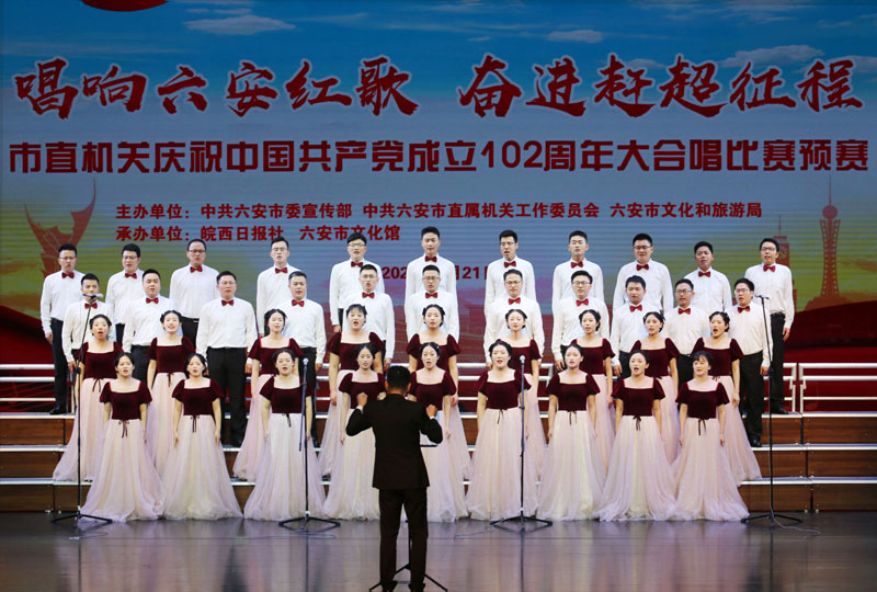 当日,六安市举办市直机关庆祝中国共产党成立102周年大合唱比赛,来自市直机关25只代表队参加比赛。