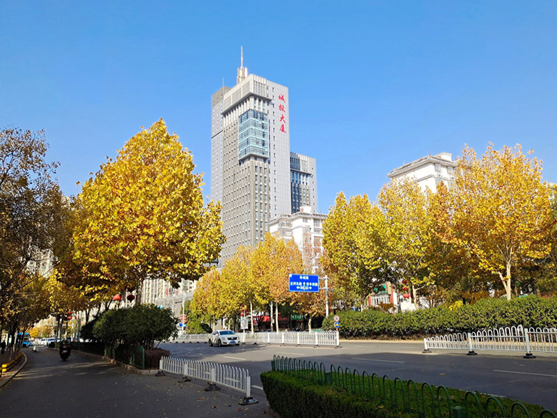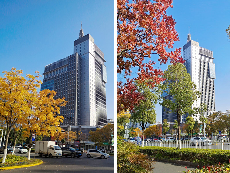 初冬时节,六安城投大厦周边层林尽染,色彩斑斓,景色迷人,宛如油画。 (胡吉林 摄)